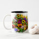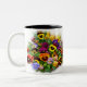 A beautiful bowl planted with pansies in so many lovely colors, with a shadow image in the background. A beautiful mug, sure to make a great gift for flower lovers!........................