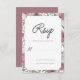 This watercolor, floral, reply card has a white centre and is framed with plum-coloured and dusty-rose-coloured pansies. (<a href='http://www.freepik.com/free-vector/wedding-invitation-with-botanical-style_1062569.htm'>Designed by Freepik</a>). <br/><br/>The card is easy to customise with your wording, font, font colour and choice of six paper types.<br/><br/>Not exactly what you're looking for? All our products can be custom designed to meet your needs at no extra charge.<br/><br/>Simply contact us at askcottonlamb@gmail.com<br/><br/>Coordinating products available: Pansy Blossoms Invitation<br/>Pansy Blossoms Postage Stamp<br/>Pansy Blossoms Thank You Photo Card