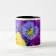 Pansy flowers floating in bird bath with dew Two-Tone coffee mug