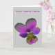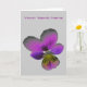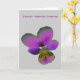 This greeting card features a photograph of a wild Pansy flower. The photo has been artificially coloured resulting in a pansy with light and dark shades of purple and a yellow and black centre. The background is pale grey. There is customizable purple text above the pansy, on the front of th card, making this card suitable for any occasion.