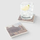 The coasters are gorgeous, a quality feel and heavy weight. They look like a precious archeological find. A rustic stone juxtaposed with a modern floral black and white print. I like the way the print goes slightly imperfect on the cut stone edges giving them a kind-of natural beauty.