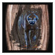 Une panthère noire peinte sur du bois foncé et donnant l’impression de sortir du more eau de bois.