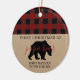 First Christmas as dad ornament with red and black check plaid pattern and papa bear on kraft. Update with your photo on back, name and year.