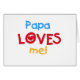Papa Loves Me T-shirts, cards, stickers, bodysuits bags, and more with colourful red, yellow, and blue text and heart design. These Papa Loves me apparel and gift items will make papa smile!