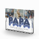 Modern family photo block featuring 3 square pictures for you to replace with your own, the title "PAPA", a personalised saying that reads "the man, the myth, the legend", and the grandkids names.