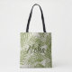 Papkolea Beach is one of the most colourful beaches in Hawaii, located on the south east point of the Big Island. The sand is green as a result of the mineral olivine from the volcanic cinder cone. We created this design from the inspiration of the colours of this beach and added palms that fan the breezes overhead. The colours are shades of palm greens and sandy naturals. Our beach bag says "Aloha", but you can customise it with a name or even the word "bride".