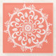This white mandala sits on a papaya orange or salmon background. The colours are light and warm. Part of the Payon Mandala Collection.