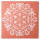 This white mandala sits on a papaya orange or salmon background. The colours are light and warm. Part of the Erghenn Mandala Collection.