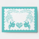 "Papel Picado Aqua Green Fiesta Wedding A7 5x7 Envelopes." Hand drawn design elements include laurel leaf wreath elements, swirl scroll flourishes, cute whimsical dove birds, a heart with flowers and leaves and a scalloped edge. On the reverse side are the bride and groom's initials. Original art and graphic design created by internationally licensed artist, Audrey Jeanne Roberts, copyright.