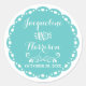 MATCHING ENVELOPE STICKERS OR SEALS - or use for favours, napkin rings or belly band seal. Inspired by the wonderful Mexican fiesta banners of tissue paper that are hand cut in delightful folk art patterns, this invite set is meant to be mix and match bright colours. Perfect for a backyard, rustic, country western or barn style, spring or summer wedding celebration under the trees. Change the front or back colour using the colour change picker or we can help if you need it, just message us. Hand drawn design elements include laurel leaf wreath elements, swirl scroll flourishes, cute whimsical dove birds, a heart with flowers and leaves and a scalloped edge. On the reverse side are the bride and groom's initials. Original art and graphic design copyright Audrey Jeanne Roberts. COLORS: bright pool ocean aqua blue and white.