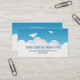 Paper aeroplanes in flight above fluffy white clouds represent moving on to bigger and better things. The company name and main contact information prints in the clouds. The reverse shows the paper aeroplanes have moved on with further contact information printing in the blue sky and clouds Available with matching products.