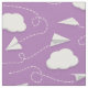 This fun custom fabric features various illustrated folded white paper aeroplanes and their flight trails with puffy clouds patterned on a lavender background - easily customise the background to any colour that contrasts with the white graphics in the design - by katz_d_zynes