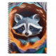This item features cute paper craft style 3D art featuring a baby racoon peeking out of a tree .