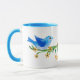 Customise this cheerful bird motif mug with your own name or text. Features a pair of cut and layered paper look bluebirds on flowered branches, created with graphics by MariR at www.cu4you.com.