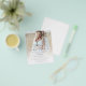 A great value budget priced PAPER (not card) alternative in a SMALLER size 4.5” x 5.6” without envelopes - standard A6 envelopes are the nearest size to fit. Paper Boho Vintage Clothes Girl Boy Script Overlay Baby Shower invitation. For your Bohemian themed informal shower with modern phto overlay design. With a set script for Baby Shower and easily personalise the rest of the text to your details and replace the sample photo with your own. You can also click the Edit further button to change font styles, colours and background colour on the back if you wish.