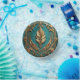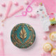 Beautiful gold leaves against a teal background cover the inside of this paper bowl.
