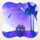 A surreal synthwave artwork featuring a lone rider on a motorcycle under a dreamy neon sky. Vibrant purple and blue tones blend with planets, shooting stars, and palm trees to create a nostalgic retro-futuristic atmosphere. Perfect for fans of cosmic art, retro vibes, and bold creative expression.