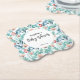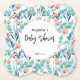 Paper Coaster for baby shower, decorated with adorable watercolor plant images featuring soft pastel emerald and blue leaves, branches and soft pink flowers.