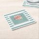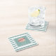 Paper coasters in white teal stripes for home, finca or business owners in Mallorca or for events and celebrations taking place in Mallorca.