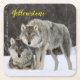 Paper coaster set shown with a photo print of wild wolves within Yellowstone National Park .