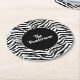 Paper coasters set shown in a cute animal zebra print with a custom name sample print.