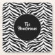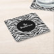 Paper coasters set shown in a cute animal zebra print with a custom name sample print.