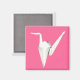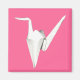 Photograph of a white folded paper crane on pink (customizable) background color.