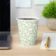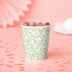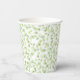 Paper cup for baby shower, decorated with beautiful watercolor pattern of charming delicate branches with light green leaves.