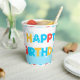 elebrating a child's first birthday. The character of a cute elephant pilot is flying an aeroplane through the sky with a balloon in the form of the number 1.