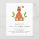 PAPER Cute Bear Bee 1st Birthday Party Invitation. A great value PAPER (not card) alternative WITHOUT ENVELOPES at SMALLER size 4.5” x 5.6” and at a budget price. (Standard A6 envelopes are the nearest size to fit) A cute bear watching a bee is at the top. The header is large in stylish lowercase with the details beneath. Easily personalise the text to your own details.