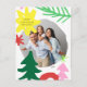 A modern, bold and colourful holiday photo card design featuring abstract christmas themed shapes inspired by colourful 90's prints.