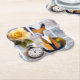 Playful and unique paper fox with pocket watch coaster, fun conversation piece for soda party of friendly gathering.