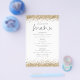 PAPER Gold Glitter Script Wedding Menu. A great value PAPER (not card) size 5.5” x 8.5” alternative. A stylish set script for the header Menu and faux glitter borders in gold. Easily personalise the rest of the text to your own details which includes alternatives for your vegan or vegetarian options.