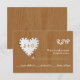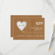 Paper heart on wood with monogram wedding RSVP Card