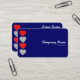 A business card template with a column of hearts in alternating colours and subtle tissue paper like semi-transparent texture. Company name, business type on the front with name, address and other details on the back. Suitable for many types of business.