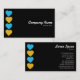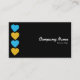 A business card template with a column of hearts in alternating colours and subtle tissue paper like semi-transparent texture. Company name, business type on the front with name, address and other details on the back. Suitable for many types of business.