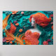 3D paper quilling illustration of a mermaid swimming within a coral reef.
