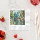 This vintage-inspired cocktail napkin features a beautifully detailed illustration of a vibrant blue and pink bird perched on an ornate, antique-style post. Surrounded by delicate pink blossoms and lush greenery, the scene evokes a serene countryside charm. Perfect for bringing a touch of nature and timeless beauty to any event.