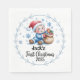 Add charm and practicality to your holiday table with these Baby’s First Christmas napkins. The design shows a baby boy next to a bag of presents, highlighted with festive blue accents. Personalise with your baby’s name to make this once-in-a-lifetime celebration even more memorable.