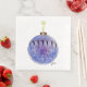 Holiday ornament in blue. Ink drawing of a round tree decoration with "Peace on Earth" beneath 3D looking arches that support the "roof" of the orb. Inside text may be changed. Original artwork by John Alexander Muir.