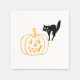 Jack-o-lantern in orange with a startled black cat standing next to it.
