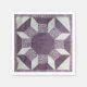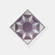 Quilt block in purple and white "spool" pattern. Eight spools rotate around a centre of dark purple. A purple flower print is the "thread" on the spool and also the framing strip between blocks.