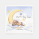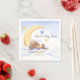 Paper napkin with a cute sleeping plush bunny on the moon for a baby shower.