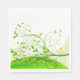 Paper napkin is shown with a lovely green floral swirl print on a white napkin.