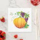 Paper napkin is shown with a lovely pumpkin and grapes fall harvest print on a white napkin.