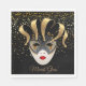 Paper napkins shown with a festive Mardi Gras mask and gold stars and text which you can customise if desired.