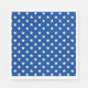 Party paper napkins shown in the white luncheon size with a blue and white patriotic stars print.