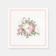 Party paper napkins shown in the white cocktail size with a pretty vintage pink rose print.