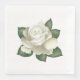 Party paper napkins shown in the white dinner size with a art print of pretty vintage rose in white.