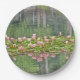 MATCH THSESE PAPER PLATES UP WITH THE PAPER NAPKINS ALSO FOUND HERE AT KDSphotography/ZAZZLE. PALE PINK LOTUS BLOSSOMS AND LILY PADS REFLECTED, ALONG WITH TREE TRUNKS FROM ALONG THE BANK, IN THE POND.